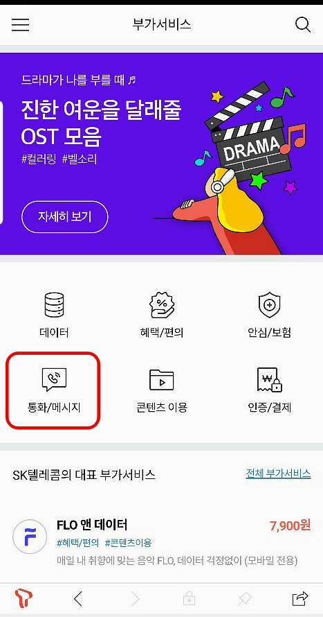 모바일 T월드 어플을 실행하여 부가서비스에서 통화/메시지로 들어가줍니다. 오른쪽 상단에 검색 버튼을 클릭하여 컬러링을 입력해서 바로 들어가는 방법도 있습니다.