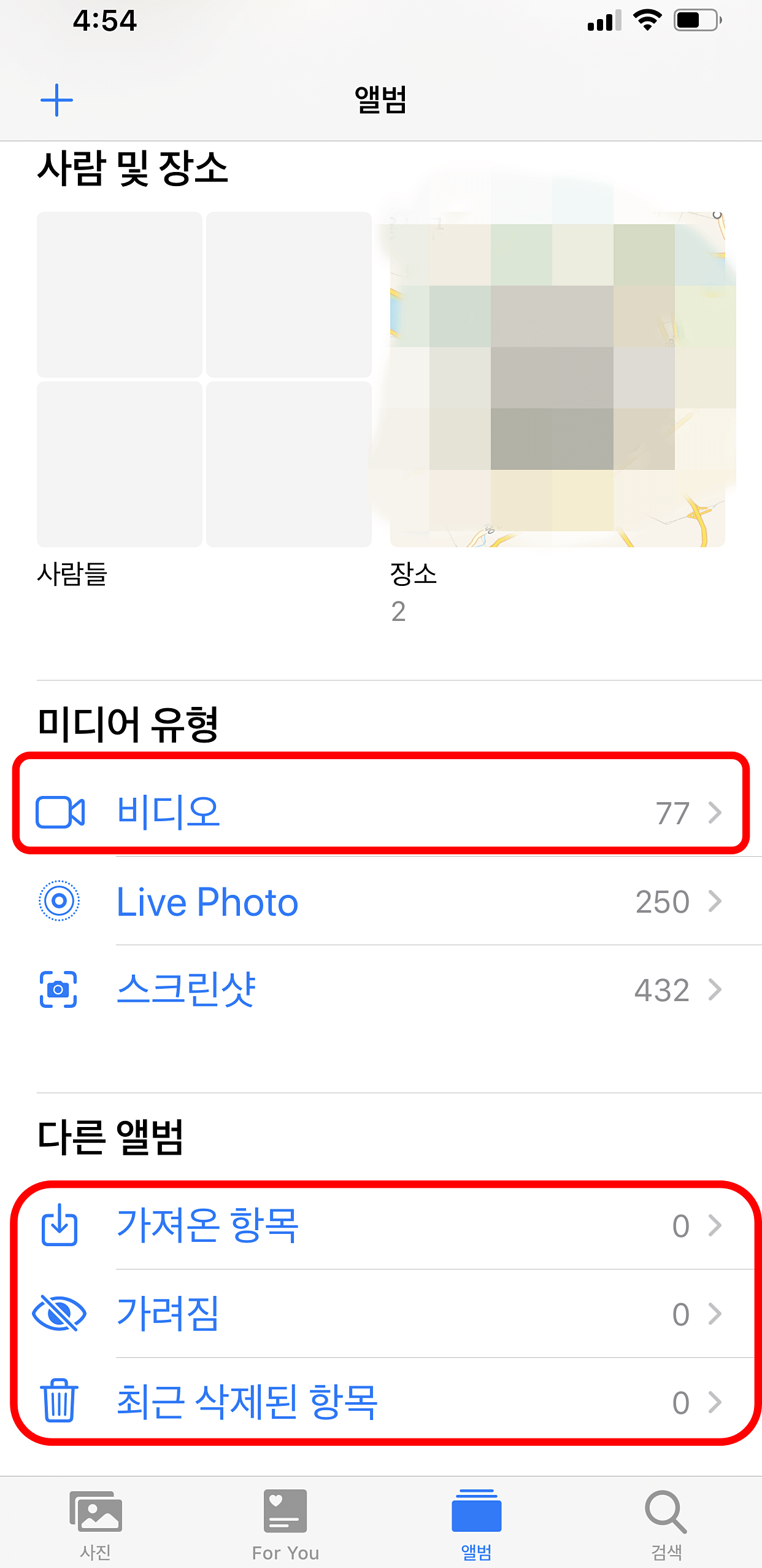 특히 사진 부분에서는 동영상과 최근 삭제된 항목을 지워서 용량 확보를 할 수 있습니다. 기타 페이스북, 인스타그램 또는 각종 사진 어플에서 저장공간을 많이 잡아먹고 있을 수 있습니다. 가끔은 아이폰속도와 저장공간 확보면에서 중요한 부분만 백업 후에 초기화를 해보는것도 좋습니다.