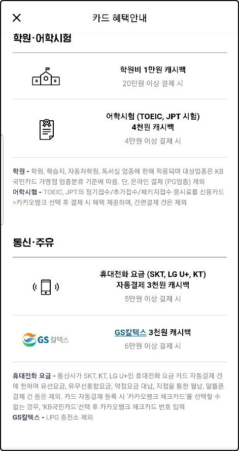 카카오 카드의 장점이라면 전월 실적에 제한없이 가맹점에서 사용한 모든 금액이 캐시백이 된다는 점입니다.