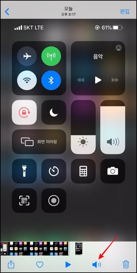 여기서 녹화 소리가 들리지 않는다면 사진 스피커 아이콘이 꺼짐으로 되어있는지 확인을 하고 다시 확인해보면 내가 아이폰에서 녹음한 소리까지 들을 수 있습니다.