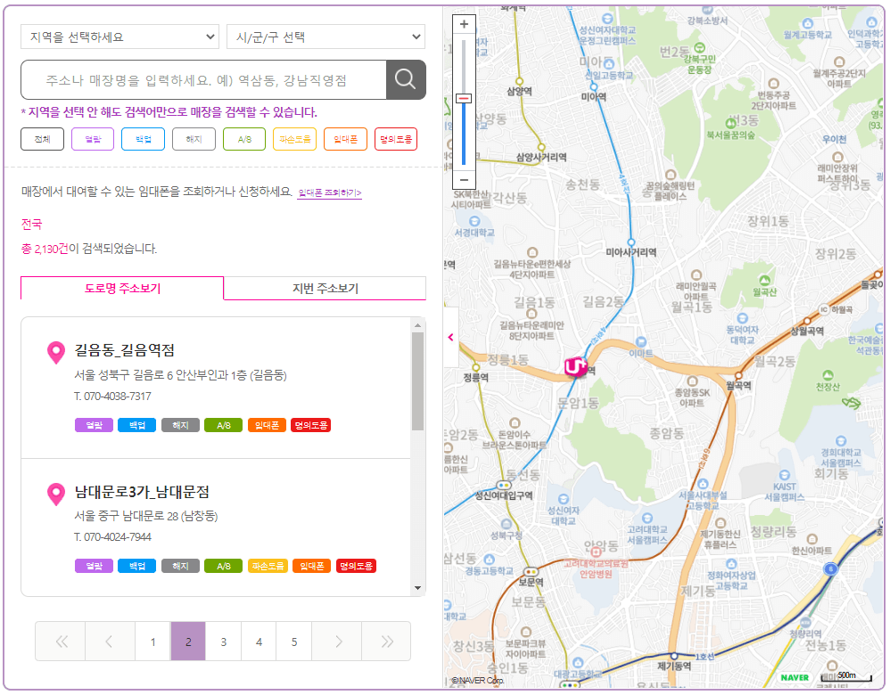 길거리에 보이는 U+ 대리점이 많이 보이지만 실제로 검색을 해보면 직영점의 수는 그리 많지는 않습니다. 자급제폰 보험가입이나 요금제 변경 등으로 문의할 것이 있다면 대리점보다는 직영점 방문이 더 좋습니다.