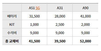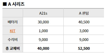 갤럭시A21, A31, A51, A71(퀀텀) 배터리 교체 비용