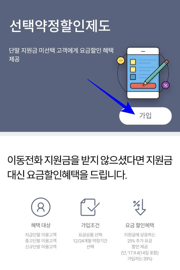 통신요금을 25% 줄일 수 있는 '선택약정할인제도' 이제는 전 국민이 알고 있다고 해도 될 것 같은데요. 하지만 약정이 만료가 됐을 때 직접 재가입을 해줘야합니다. 만약에 깜박하고 재가입을 안하게 되면 요금할인 혜택을 못받고 더 많은 요금을 내야하기 때문입니다.