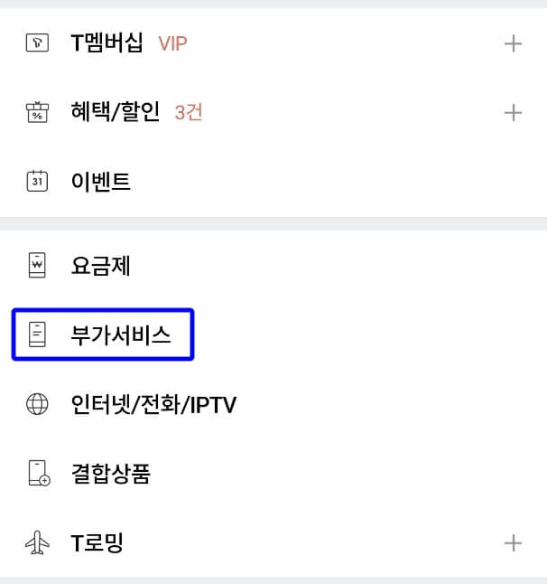 SKT T월드 홈페이지나 어플에서 간편하게 선택약정할인 25%를 신청할 수 있습니다. 앱을 기준으로 부가서비스에 들어가서 '선택약정할인'이라고 검색을 해줍니다.