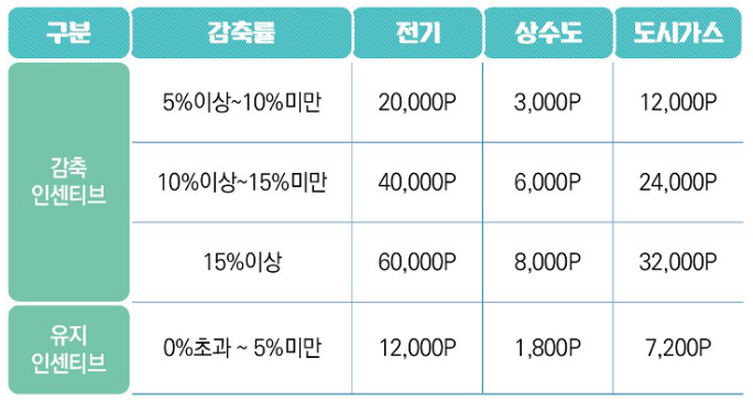 상업시설에서 사용하는 에너지 항목(전기, 수도, 가스)을 과거 1~2년간 월별 평균 사용량과 현재 사용량을 비교하여 절감비율에 따라 탄소포인트를 부여합니다.