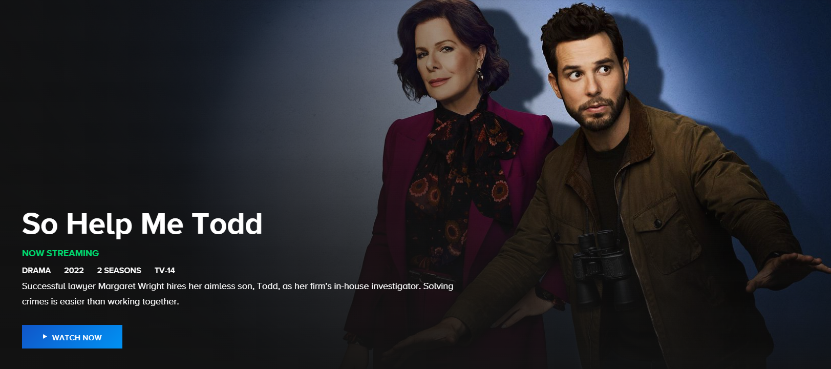 "헬프미, 토드"는 CBS에서 방영된 드라마로, 재능은 있지만 경제력, 직업 윤리는 다소 떨어지는 사설 탐정 '토드'가 어머니의 로펌에서 마지못해 일하게 되는 이야기를 그립니다. 이 드라마는 마샤 게이 하든과 스카일러 애스틴의 유쾌한 모자 케미부터 실력은 있지만 합법과 불법의 경계를 넘나드는 조사관 '토드'의 노하우와 활약상, 거기에 흥미진진한 법적 공방까지 모두 확인해보실 수 있습니다.