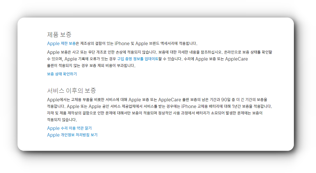 제가 사용하는 XS MaX 리퍼기간을 조회해봤습니다. 지금 무상리퍼기간도 끈난 상태고 보험도 없기 때문에 여기서 치명적인 결함이 발생하면 골치가 아프겠죠.