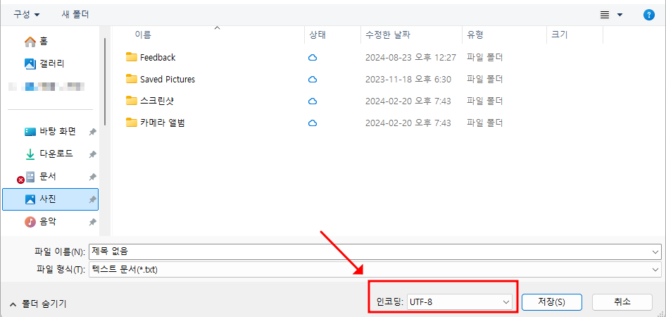 파일 저장 시 인코딩 형식 확인