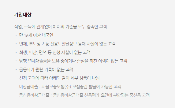 - 신용 상태: 신용 점수가 일정 수준 이상이어야 하며, 연체나 부실 거래 이력이 없어야 합니다.