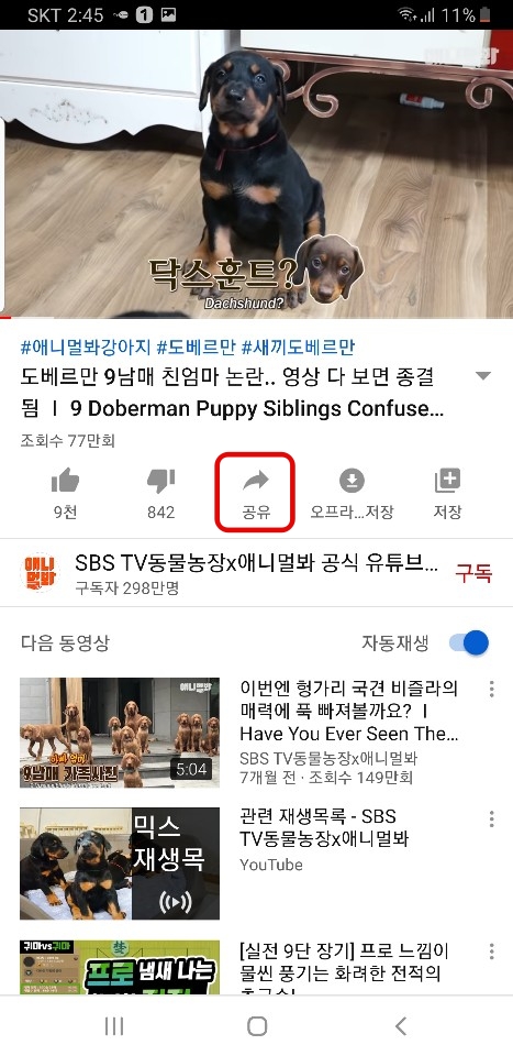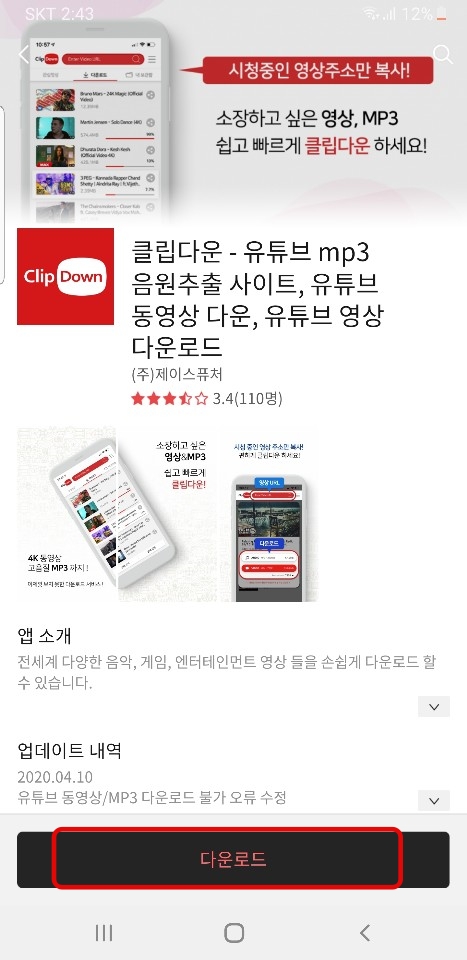 클립 다운의 또 하나의 장점은 모바일에서 바로 다운로드가 가능하다는 점입니다. 구글 플레이 스토어에서는 다운로드가 안되기 때문에 ONE STORE 어플에서 클립다운 어플을 다운로드해줍니다. 그리고 유튜브에서 공유 버튼을 클릭하여 줍니다.