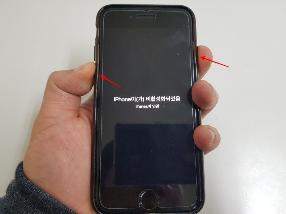 - 아이폰이 재부팅 되고 애플 마크가 뜨면 전원 버튼은 손을 떼고 볼륨다운 버튼만 계속 누름